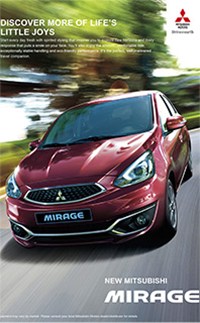 Là mẫu xe compact hiện đại, Mirage với diện mạo mới sành điệu hơn, cá tính hơn cho cuộc sống năng động. Mirage kế thừa đầy đủ những phẩm chất truyền thống của Mitsubishi về khả năng vận hành mạnh mẽ và bền bỉ. Cùng với công nghệ MIVEC tiên tiến, Mirage tự hào là mẫu xe tiết kiệm nhiên liệu hàng đầu trong phân khúc.